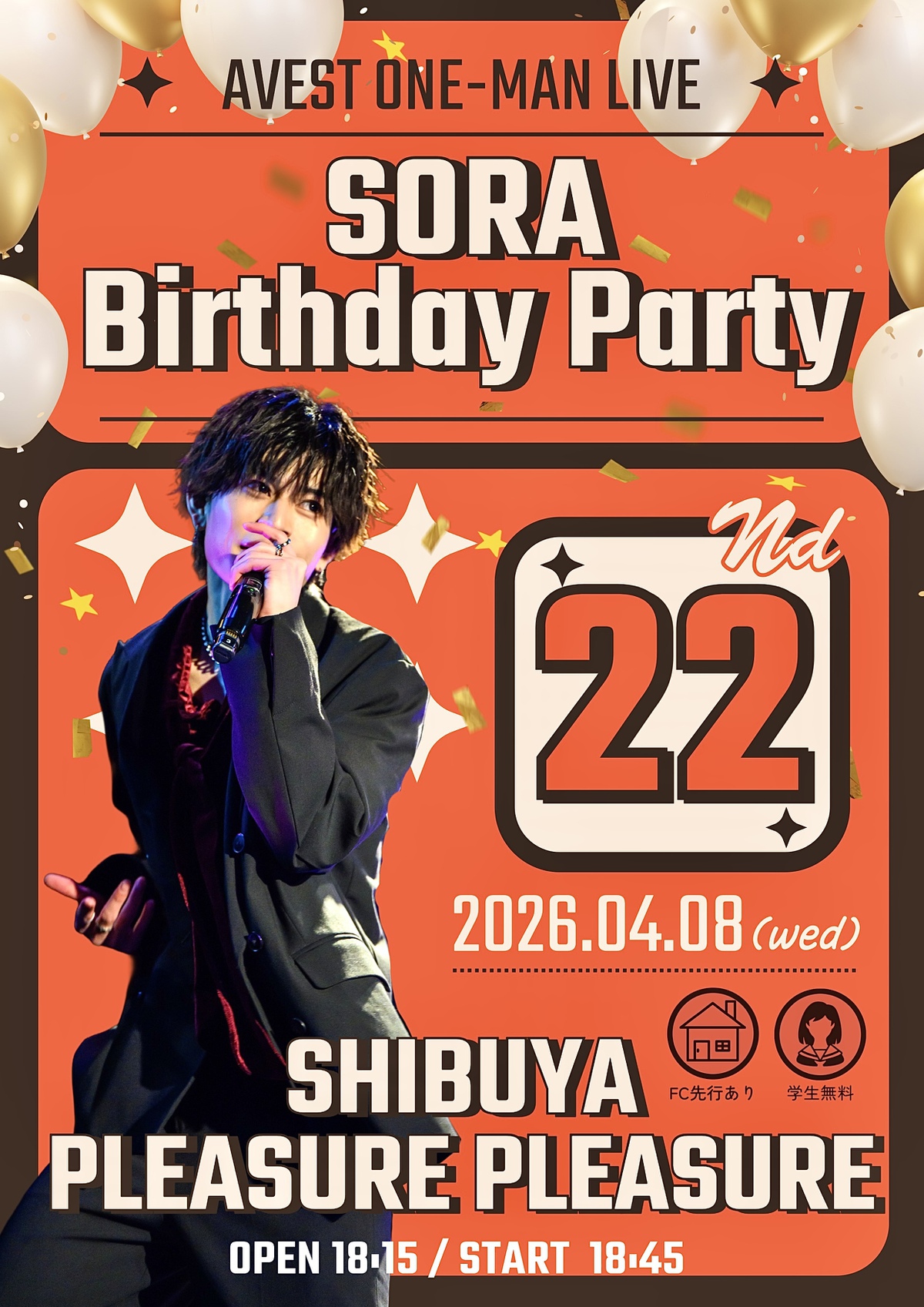 4/8(水) AVEST ワンマンライブ SORA 22nd Birthday Party @SHIBUYA PLEASURE PLEASURE