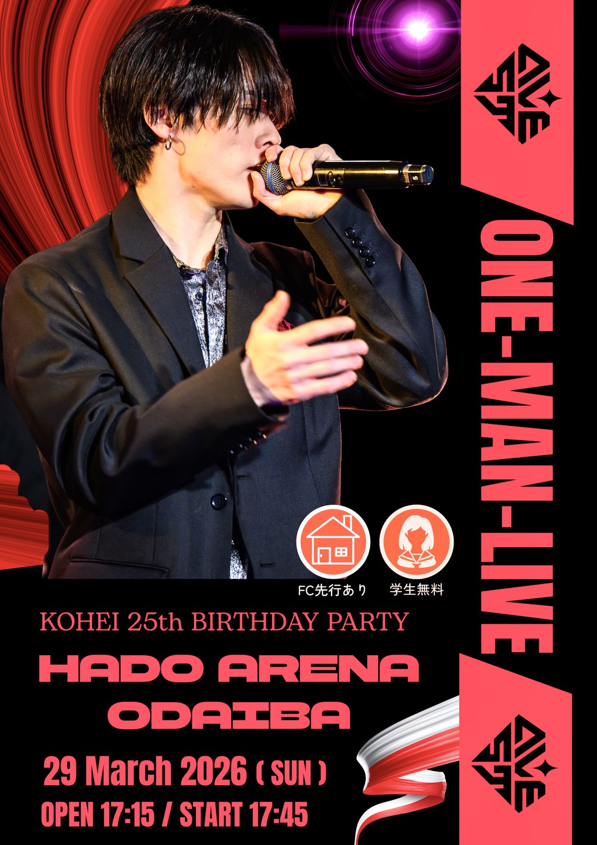 3/29(日) AVEST ワンマンライブ KOHEI 25th Birthday Party @HADO ARENA お台場